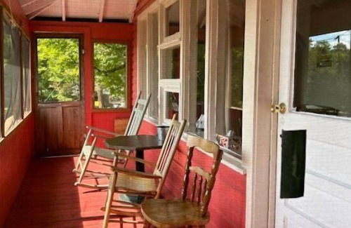 Screened in porch with rocking chairs