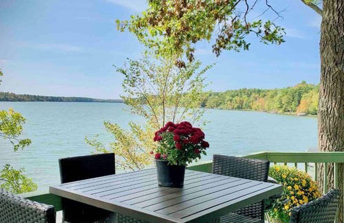We offer a private dock and magnificent views, deck with outdoor seating and a fire pit. Public boat landing 6 minutes away.
