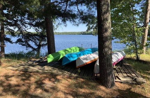 RoKu TV if you have a hotspot but WiFi is expected in by 6/1/23. Most guests come to a retreat like setting to relax, and I have available many recreational amenities free to use and explore ( and they do!). 26 acres of private acres, boathouse is directly on the lake, which is one of the cleanest in Crow Wing County. Plus we’re near the Cuyuna bike trails Deerwood access. My boathouse is from 1946, and grandfathered in, so some changes are not allowed, such as a bathtub or change in dimensions. There is a shower, standard sized toilet, sink vanity that was part of the boathouse before building restrictions changed a number of years ago. A mini-fridge does not have a freezer, but I have many smaller appliances such as burner/oven/microwave/fry pan/ and other amenities. I have a freezer in the garage guests can use if requested ahead of time. You may use my little gas grill or a charcoal grill. I live on a peninsula, and one side is sugar sand swim area. Wild meadow flowers and an undeveloped shoreline. The peninsula has wildflowers and is completely undeveloped, and a narrow path on the narrow peninsula. My house is on the property, but you will have peace and privacy because I’m seldom home or if I am, I’m usually inside reading a book. Come enjoy quiet lake living! Coming in 2024 WIFI.