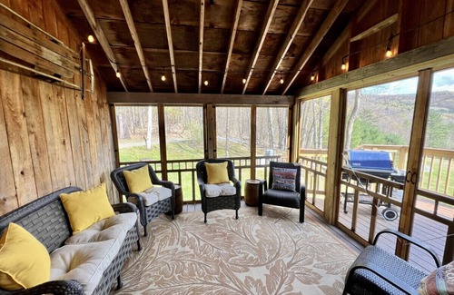 This two-story, fully equipped dog-friendly home nestled in the green hills of Southern Vermont offers expansive mountain and valley views, beautiful in every season. Located between Bennington and Manchester, Hillside Getaway is a short drive to shopping, dining, hiking, skiing and fishing on the Battenkill.