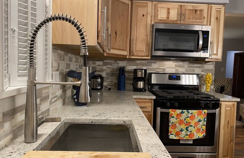 Beautifully remodeled tudor house, featuring a huge king master bedroom with en-suite master bathroom in the upper level. Other 3 queen bedrooms complete the sleeping quarters. Full bathroom in the main level between the queen bedrooms and another half bath in the basement will provide convenience to our guests. The house was conceived with an open concept between the super comfy and charming living area and the fully stocked kitchen with all stainless steel appliances. For those beautiful summer afternoons we have a nicely decorated sunroom with double patio doors that give direct access to the driveway and 2 car garage. In the basement there is a TV room with premium sound system and table games, we also included a massage chair for your pleasure. A spacious and convenient laundry room completes this level of the house.