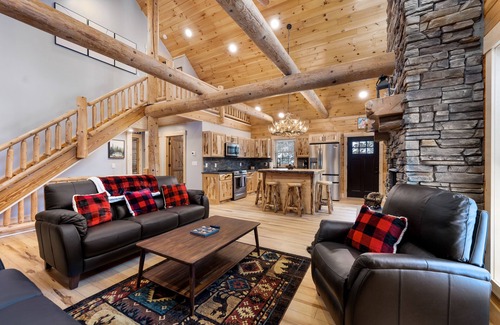 We welcome you to a week away from the daily grind to a beautiful, secluded cabin in the woods. This newly renovated home features 3 BR (1 King, 2 Queen), 2 baths, & a bunkroom w/8 twin beds. Finished in wall-to-wall pine and a fireplace for that cozy cabin ambiance. Enjoy the new outdoor Hot Tub! Mudroom for ATV or snow gear. Snowmobile Trail directly behind Cabin! Only a few miles to ATV trail access! Conveniently located near town for all your needs. Private/plentiful parking + garage. The Cabin is a separate space from the Loft (above the garage). There are three options to book: The Cabin, The Loft, or the whole property (Cabin and Loft).