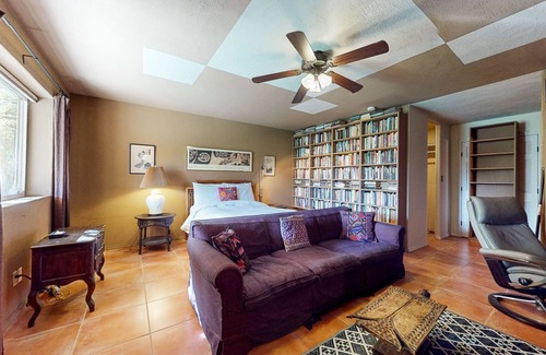 Charming secluded home mountain views, covered front porch, & book collection is located in Taos. Charming secluded home mountain views, covered front porch, & book collection provides accommodation, featuring TV, Wellness Facilities, Child Friendly, among other amenities. This House features TV, Wellness Facilities, Child Friendly, to make your stay a comfortable one.