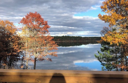 Fish, hike, bike, swim, canoe, eat S'mores and more at The Wascottage. Enjoy all the amenities and complete privacy at this hand hewn log cabin on 38 acres of forested land with 800 feet of lakeshore on pristine Spider Lake in Wascott, Wisconsin. There is a trail system within the property for easy access to hiking and biking. The wildlife on the property is amazing. You will see deer, turkeys, loons, geese, herons, eagles, trumpeter swans, ducks and the occassional badger. For ATV and snowmobile enthusiasts, Trail 41 is next to the property and connects to hundreds of miles of groomed trails. For those who love to fish, Spider Lake is a 100 acre private lake with very few anglers. Three pound bass and 6 pound northerns are not uncommon and the crappies are plentiful. A 20 foot pontoon with a 25 hp motor is provided as well as a kayak and paddleboat. Swimmers in the group will enjoy the shallow, easy access to the sandy-bottomed lake. As dinner approaches, you can either plan to go to a nearby restaurant or grill up some grub on the Weber and dine on the patio overlooking the lake. After dinner, head to the fire pit, build a fire and take in the shooting star show. Welcome to the Wascottage!