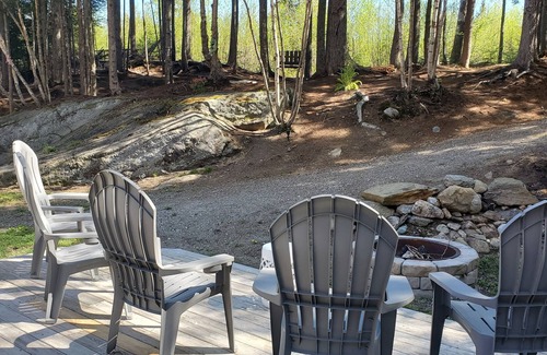 Cute, cozy cottage with rustic charm! Nestled in the woods with fire pit outside, landscape lighting at night. Nice, roomy deck with gas grill. Inside are knotty pine walls, comfortable furniture, super clean! There are two bedrooms and a loft. Near many restaurants, stores, lakes, rivers, rock climbing and trails. Close to Polar Caves and Rumney Rocks, Newfound Lake (Wellington State Park) and Stinson Lake. There is Spectacle pond close by for great trout fishing and kayaking. Nice, shallow area for young kids to swim as well.