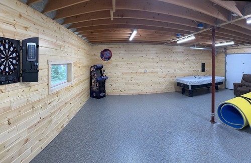 A big 24x24 game room will be finished by Memorial Day weekend 2023. It will include NFL Blitz arcade, shuffleboard, Darts, and what ever else we decide to through in there!!!!