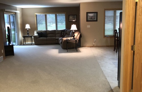 This great home is just a 9 iron away from the beautiful Valley Golf course that is an 18 hole golf course in picturesque Buffalo County in Wisconsin. The kitchen is large to make meal preparation easy with an eat-in area for convenience. It has the accommodations for up to 6+, that can be for a family or small group of friends, with one King bed in the master bedroom, a double/twin bunk bed in the guest bedroom, a full click clack bed/couch and a large sectional couch to maximize the sleeping capability.