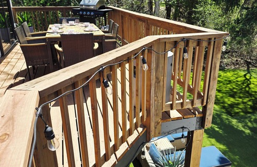 K.W.'s Main Street Manor is literally ONE block from charming downtown Pequot Lakes with bars, restaurants, coffee shops, boutiques, splash pad and the 115-mile Paul Bunyan State Trail (biking(2 bicycles included!!)/snowmobiling/cross-country skiing). This newly remodeled property boasts 5 bedrooms, including 3 king bedrooms and 2 queen bedrooms, and 3 full bathrooms, perfect for accommodating all your guests. Each bedroom has its own Roku TV, mirror for getting ready and unique character/extra amenities. The primary has its own bathroom, plus an extra space for reading or visiting with your favorite person. There are two separate common areas for guests to spread out depending upon activities and mood. The downstairs family room has a 65" Roku TV, leather sectional with foot rests/beverage trays, multifunctional table for dining or poker night, plus a nostalgic Pac Man with 10 extra games, steel-tip dartboard and mini beverage fridge. This area also has a variety of adult and kid-friendly board games, puzzles, etc. The upstairs living room has a 75" Roku TV, leather sectional, cocktail tables/extra seating and opens to the kitchen and large dining table. The modern kitchen is user-friendly with extra appliances, kitchen gadgets, spices, oils, etc. for preparing meals during your stay. Plus, a plethora of fun and fancy dishes/glasses and serving trays to complete your dining/grazing activities. Seeds of Sommer (organic foods/health/beauty store) is literally one block away if you forgot to pack something.