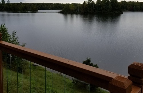This one's got it all at an affordable price! Awesome views of the clear water lake from the porch and full front deck! Four seasons of fun! Fish, Hunt, Swim, Ski, Kayak, Snowmobile/ATV trail, Billiards, Ping Pong, Darts, etc. or explore the Chequamegon National forest or rest at the cabin and enjoy the peace and quiet or turn on the satellite TV, internet and wifi. 3 BR's plus a Bunk room and a mini movie cave for the cubs! Family Friendly! Swim Raft w/diving box, Outdoor Solar Heated Shower. Fishing Boat, Kayaks, Hydrobikes and Garage/Game room rentals available upon request $50/day each.