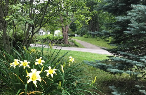 1830 Greek Revival Farmhouse on a babbling brook, 10-15 minutes to Stratton Mountain ski resort. Just steps from Jamaica Village businesses, the post office, yoga studio, West River Provisions and River & Rye whisky bar. Screened-in porch has seasonal views, icebox, a ceiling fan, dart board, gas grill, a wood burning fireplace (also with small grill or pizza oven), and an amazing salt water hot tub. The porch can seat 12-14 adults for family/group fireside dining on two optional folding beer garden tables, (normally it’s just set up with comfortable seating). The kitchen can also accommodate up to 8 at the classic barnwood farm table plus 3 to 4 more at the bar. There’s one obvious master suite, but 3 couples with kids are well accommodated, each feeling almost like they have their own luxurious suite. The Queen bedroom, living room and connected bathroom is actually used and sometimes rented as a guest suite and has its own refrigerator, cooktop, toaster oven and coffee maker. The other king bedroom is upstairs in a large private space once used for drying herbs, but now also accommodates a ping pong table. WiFi is very strong through high speed cable internet. There are 3 Roku smart flatscreen televisions and 1 Apple TV in the master. While we are literally located in the Green Mountain National Forest, we are not in the sticks. There are village sounds you will hear and either live or hate. If you stay more than a few days you will definitely hear the fire station. If you hear an air raid siren it either means they are responding to an emergency situation or it’s poker night!
