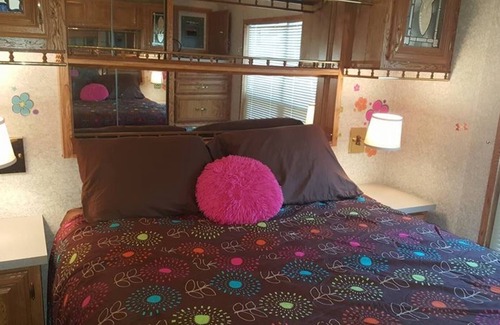 This is a charming park home that has 2 bedrooms each with a queen size bed, and a loft area with a full size mattress. The cottage has a nice living room with a sofa and loveseat as well as a nice kitchen and dining room area. There is 1 bathroom. There is an amazing patio setup with a canopy and great deck furniture. You can lounge around the fire area as well. This includes use of up to 6 water park wristbands.