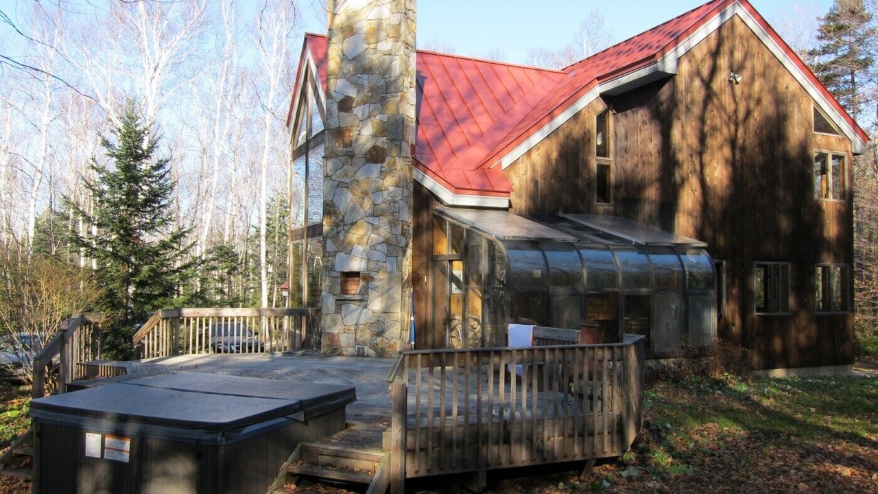 Enjoy the outdoor hot tub on deck off the sunroom after a day of skiing, boarding, snowshoeing on the property's trails or sleigh-riding down the drive.