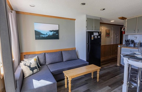 This beautiful and modern 2-bedroom/2-bathroom property is on the first floor right near the entrance/exit closest to the Ballhooter lift, sleeps eight guests, and has vinyl plank flooring throughout the entire unit. You’ll love the tastefully decorated details throughout! Mountain Lodge 125 features a kitchen island that sits eight people with a kitchen that is fully stocked with all the basics you'll need to prepare, cook, and serve a delicious meal.