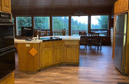 Three bedroom, three bath updated home with updated kitchen, hot tub, dual level view decks, privacy! On two acres in a prestigious area of custom homes. Beach access can be walked, biked, or driven to with miles of pristine beach to explore.