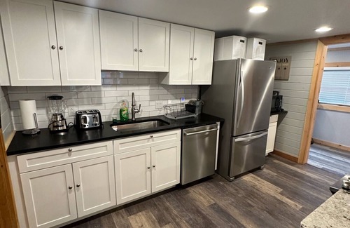 We have a paddleboard and three Kayaks for you to use. End your day with a beautiful lakeside campfire. Brand new kitchen and 2 bathrooms were just recently updated. HUGE Upstairs Adirondack family room has activities for the kids like foosball, miniature basketball hoop and air hockey table. Dock has room for 1 boat, water is roughly 3-4 feet deep.