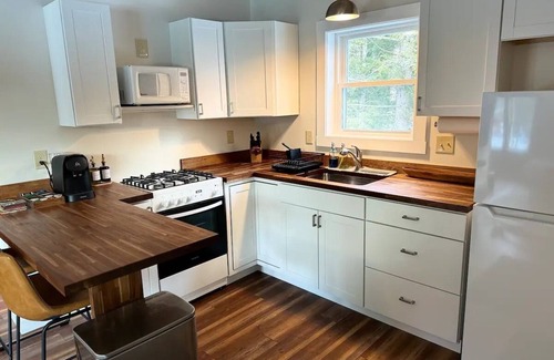 Discover our newly constructed studio, a serene haven nestled just 12 minutes away from the exhilarating slopes of Loon Mountain Ski Resort. Our small condo association also has a Seasonal Pool and Tennis Courts for added fun! This charming space offers a warm, cozy atmosphere with a luxurious king bed, air conditioning, a fully equipped kitchen, a TV, and high-speed wifi, ensuring a blend of rustic charm and modern comfort.
