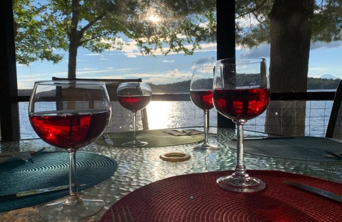 This is an authentic "Adirondack Camp". While we do have room to sleep 12 guests, it is not a large cabin. This camp works best for multi-age families. The Living Room/Dining area is a combined cozy room with a fireplace and a woodstove. (The woodstove is the camps ONLY heat source. Woodstove firewood is provided.) Our guests' favorite room is the lakeside screened-in porch which offers additional dining area and a place to view the lake and the dock from the shelter of the porch.