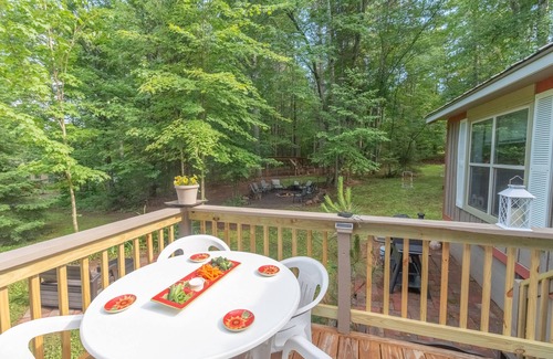 OUTDOOR LIVING: Deck, outdoor dining set, wood-burning fire pit, gas grill, outdoor seating, private yard, cornhole, ladderball, croquet set