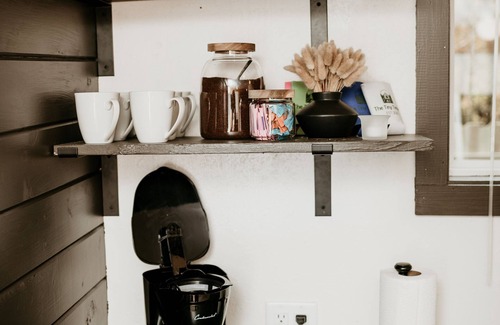 THE SPACE: The Tiny Timber features a fully equipped kitchen with all the cookware you need to make all your favorite meals! The kitchen appliances are apartment sized appliances (on the smaller side). The dining room features a table with 4 dining chairs. The living room features sofa and a chair, 32 inch roku tv, gaming console with 1000s of classic preloaded games, and a handful of boardgames and books for additional entertainment. The first bedroom features one queen sized memory foam bed, the second bedroom features a full sized memory foam bed and a twin sized bunk bed (more suitable for children but would accommodate and additional adult). The bathroom features a sink, toilet, and a single stall shower with included amenities such as towels, toilet paper and soaps.