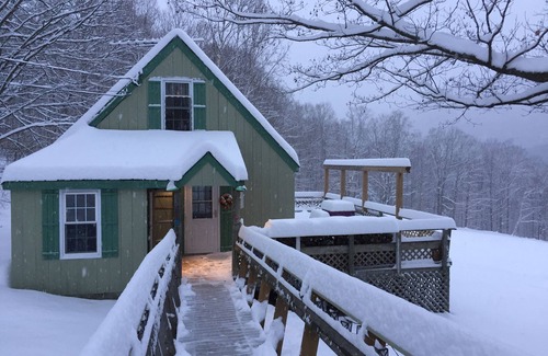 Adorable Cozy Cottage - sits on a mountainside with an OMG view- ideal for Cyclist, Skiers, Fall Leaf Peakers, Summer get away. 10 minutes from Historic Weston, 10-40 minutes from 4 major ski areas, Magic, Okemo, Bromley and Stratton. Sleigh rides and winter activities as well as many summer activities close by. Plenty of room for children to play. bedrooms are upstairs and the bathroom is on the main floor.