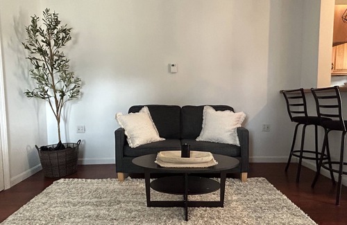 Very cozy one bedroom upstairs/downstairs apartment! Has a fireplace and TV in the living room! There is a fully kitchen that is stocked including a full sized fridge. The bedroom and bathroom are located upstairs and the living room and kitchen are located downstairs.