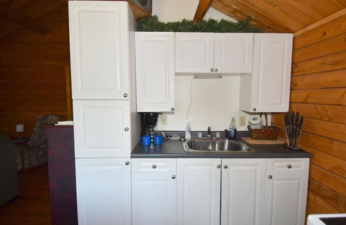 Everything you need is right here on one easy, no-stairs-required level. There’s a full-size bed that’s surprisingly comfy (not one of those creaky ones from your grandma’s guest room), and a gas fireplace to keep things warm and extra cozy when the mountain chill rolls in.